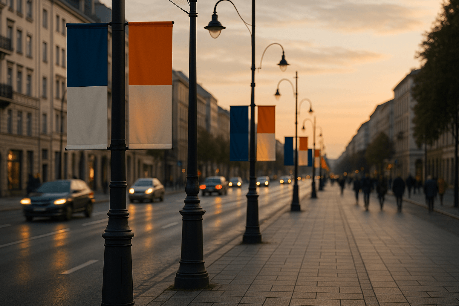 Dimensiunea bannerului se alege după diametrul stâlpului, expunerea la vânt și viteza zonei. Pe artere aglomerate, un format mai generos funcționează dacă nu sufocă mobilierul urban și dacă prinderile sunt corecte. În centrele istorice sau pe străzile înguste, formatele mai mici, repetate ritmic, arată mai elegant și se citesc mai ușor.