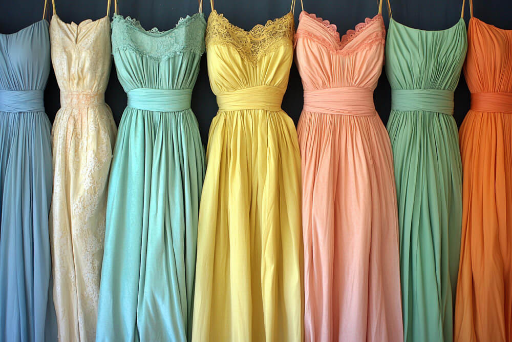 Nuanțele profunde funcționează excelent pentru rochiile de seară: bleumarin, verde smarald închis, burgund, vișiniu, prune, ciocolatiu rece, grafit, negru. Au gravitate și, în același timp, sunt ușor de accesorizat. Dar și tonurile pudrate, lila stins, albastru prăfuit, roz vechi, șampanie, pot fi superbe, mai ales primăvara și vara, dacă materialul nu este prea încărcat.