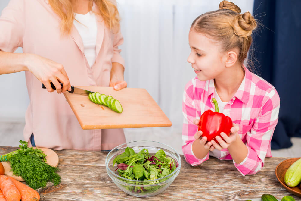 De la șapte-opt ani, copiii pot face sarcini reale: tăiat legume sub supraveghere, amestecat la aragaz, citit rețete. E și o formă de educație, și o modalitate de a-i face să aprecieze mâncarea.